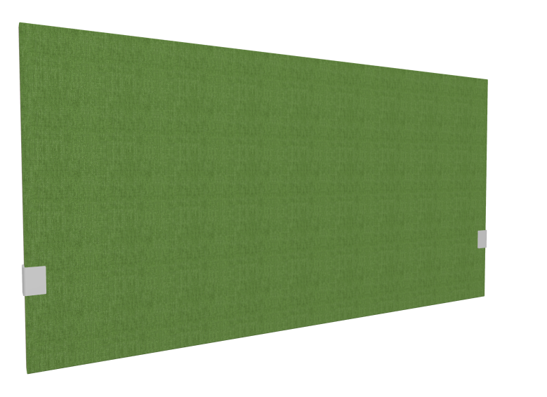 SECRET Panneau-écran acoustique H74cm pour poste solo L.140cm. 2 faces tissu BERTA coloris vert. pinces de fixation réglables en hauteur coloris aluminium