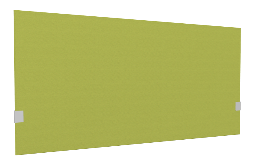 SECRET Panneau-écran acoustique H74cm pour poste solo L.140cm. 2 faces tissu SYNERGY coloris vert clair. pinces de fixation réglables en hauteur coloris aluminium