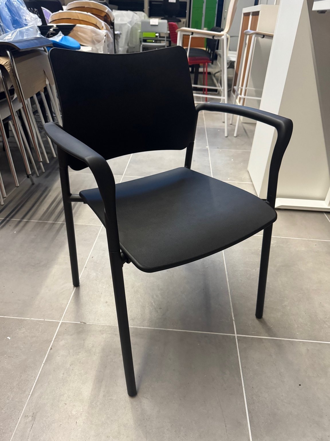 - Siège structure 4 pieds noir assise et dossier en polypropylene noir avec accotoirs