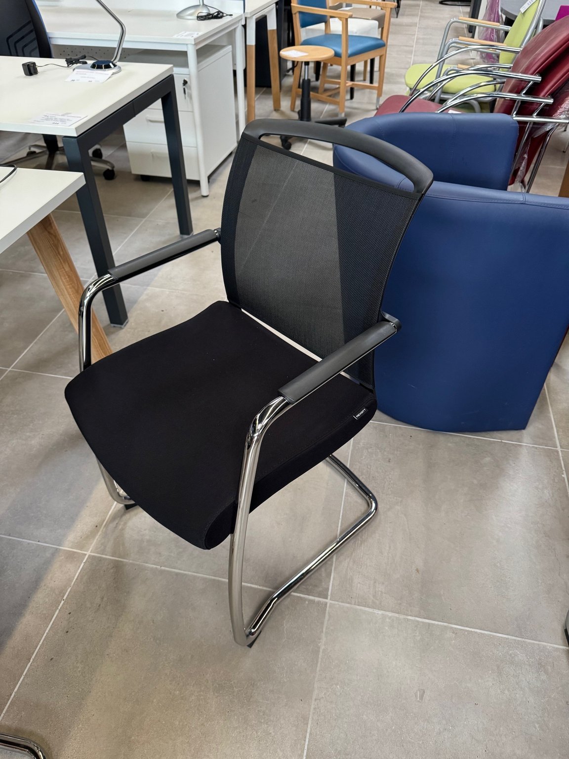 - Siège visiteur DANDY, dossier résille et assise tissu noir