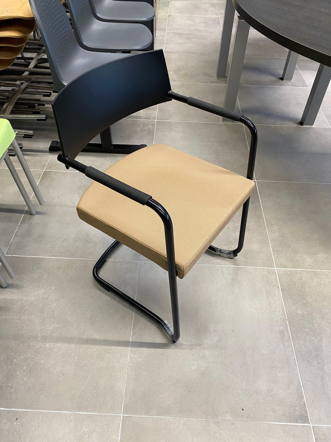 - Siège visiteur structure traineau noir avec assise marron clair et dossier en polyprolène noir