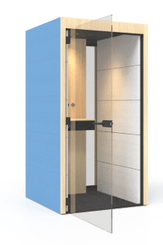 Silent Room S avec parois externes rembourrées et panneau arrière vitré, parois internes rembourrées, paroi centrale interne frontale avec système de commande, portes en verre et plafond en mélamine coloris berta