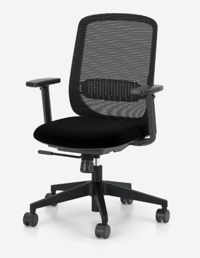 - SOLO fauteuil opérative synchrone, dossier résille coloris noir avec renfort lombaire réglable en hauteur, tissu BONDAI coloris noir, accotoirs réglables en hauteur, structure nylon noir