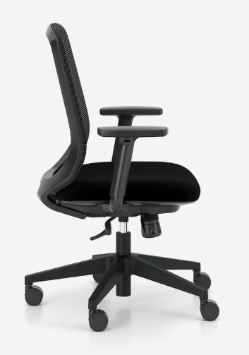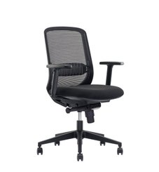 SOLO fauteuil opérative synchrone, dossier résille coloris noir avec renfort lombaire réglable en hauteur, tissu BONDAI coloris noir, accotoirs réglables en hauteur, structure nylon noir