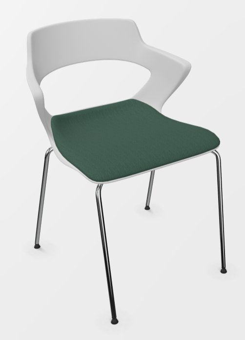 - SWEETY Chaise 4 branches acier, piétement chrome, coque polypropylène coloris blanc, placet assise tissu XTREM coloris vert