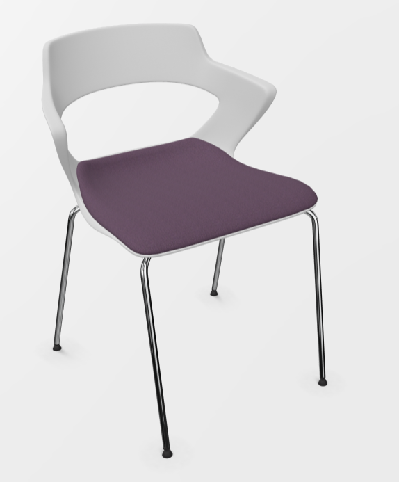 SWEETY Chaise 4 branches acier, piétement chrome, coque polypropylène coloris blanc, placet assise tissu XTREM coloris violet