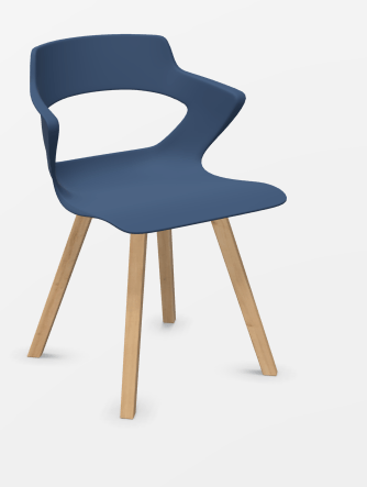 SWEETY Chaise 4 pieds bois. coque polypropylène coloris bleu. piétement hêtre massif
