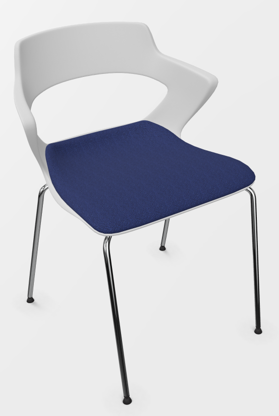 - SWEETY Chaise 4 pieds tube, piétement chrome, coque polypropylène coloris blanc, placet assise tissu BONDAI coloris bleu BNC