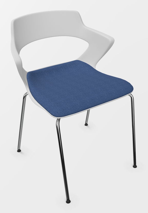 - SWEETY Chaise 4 pieds tube, piétement chrome, coque polypropylène coloris blanc, placet assise tissu BONDAI coloris bleu BNP