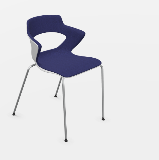 SWEETY Chaise 4 pieds tube, piétement chrome, coque polypropylène coloris blanc, placets assise et dossier tissu BONDAI coloris bleu