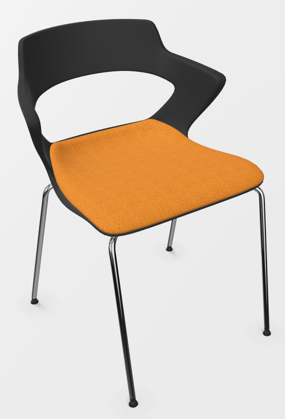 Chaise sur 4 branches fixes design SWEETY, coque entièrement revêtue de tissu XTREM coloris noir, piétement nylon noir