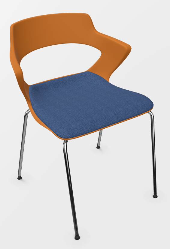 - SWEETY Chaise 4 pieds tube, piétement chrome, coque polypropylène coloris orange, placet assise tissu BONDAI coloris bleu BNP
