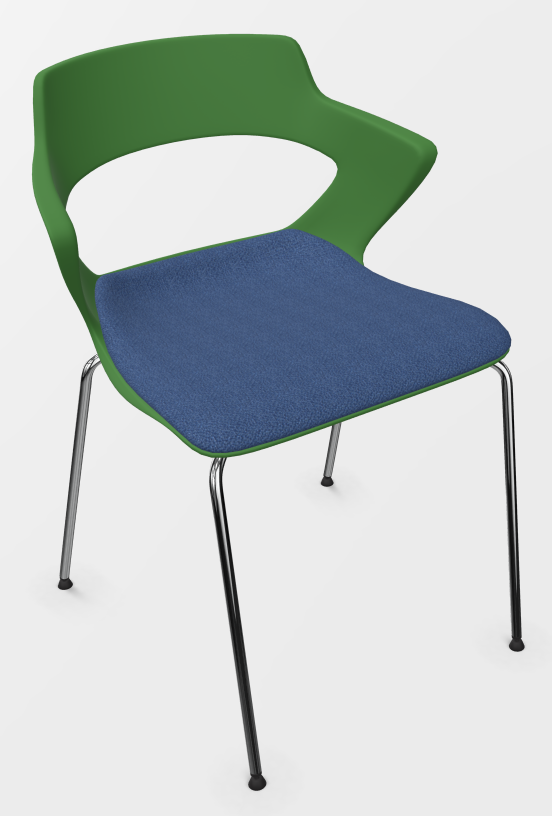 - SWEETY Chaise 4 pieds tube, piétement chrome, coque polypropylène coloris vert, placet assise tissu BONDAI coloris bleu BNP