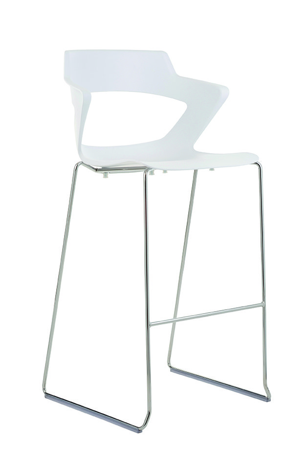 SWEETY Chaise haute pied luge. assise H74cm. coque polypropylène coloris blanc. piétement chrome