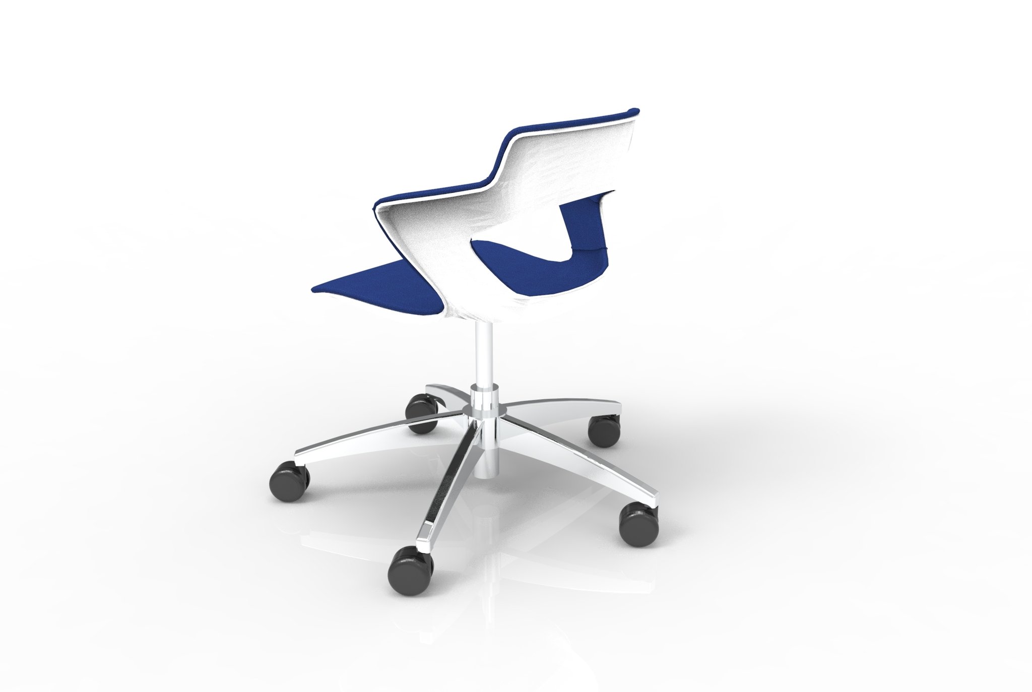 SWEETY Chaise réglable en hauteur, 5 branches sur roulettes en aluminium poli , coque polypropylène coloris blanc, placets assise et dossier tissu BONDAI coloris bleu