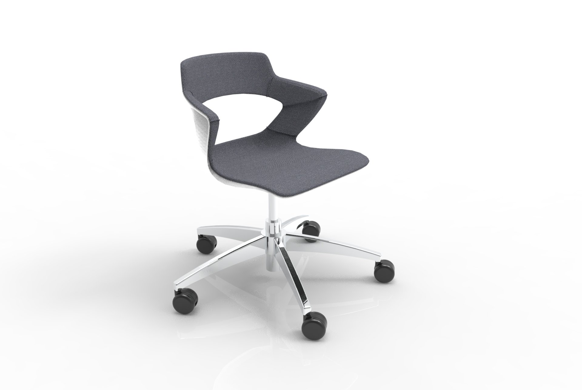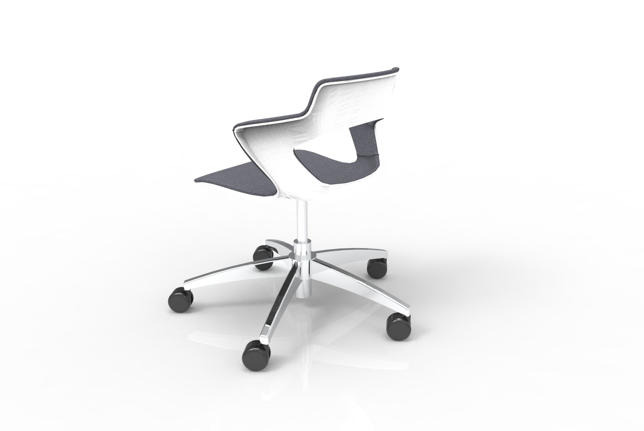 SWEETY Chaise réglable en hauteur, 5 branches sur roulettes en aluminium poli , coque polypropylène coloris blanc, placets assise et dossier tissu BONDAI coloris gris moyen