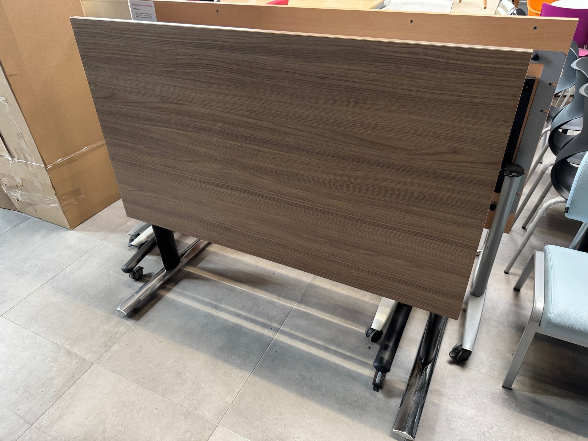 - Table abattante 140 x 80 cm plateau noyer et piétement noir et chrome