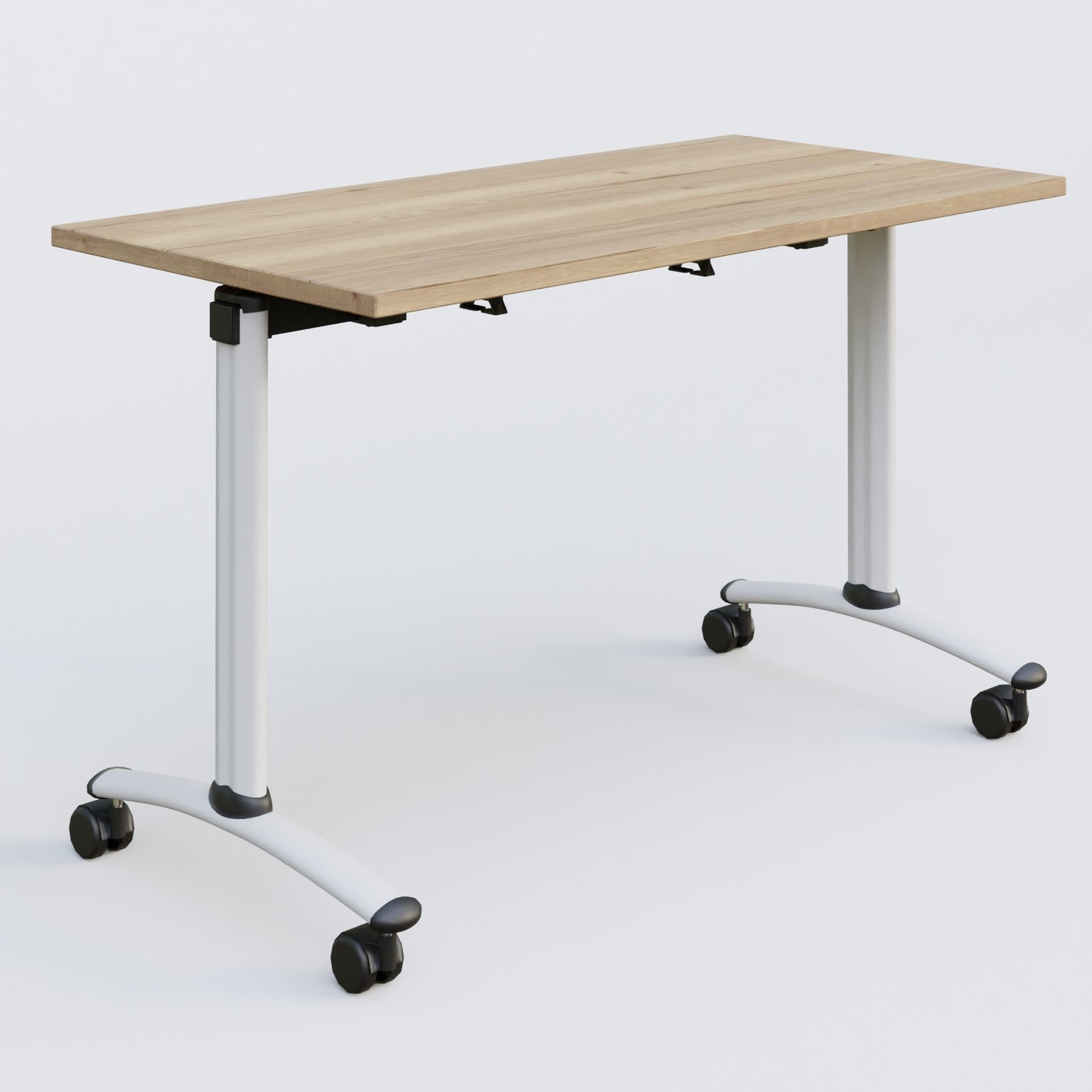 Table abattante gamme Arca 120-60 cm. Plateau Chêne naturel et pietement Blanc.