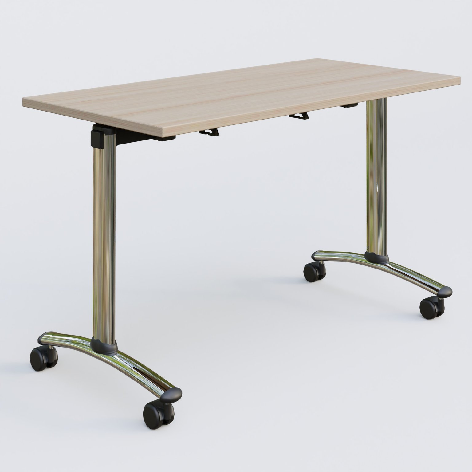 Table abattante gamme Arca 120-60 cm. Plateau Acacia et pietement Chrome.