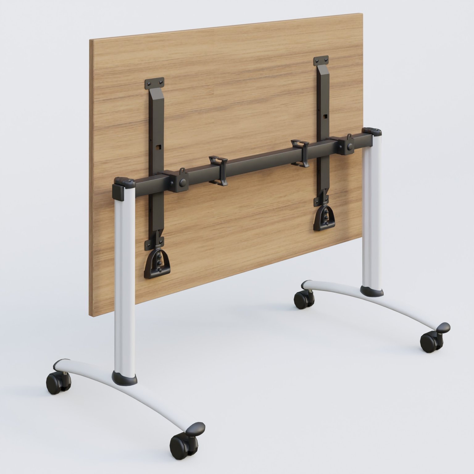 Table abattante gamme Arca 120-60 cm avec plateau en 25 mm d'épaisseur. Mécanisme de blocage/déblocage avec deux poignées sous le plateau aisémant accessibles.