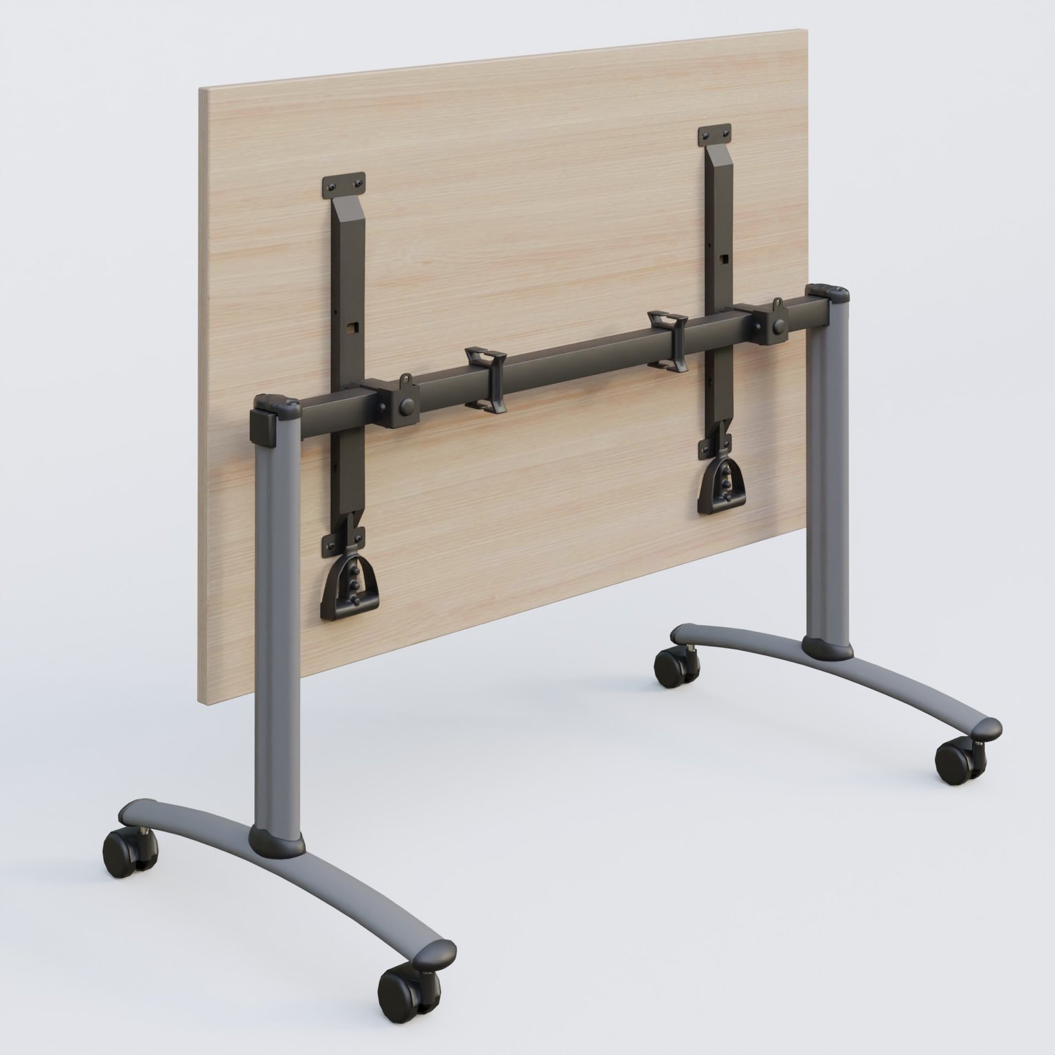 Table abattante gamme Arca 120-80 cm avec plateau en 25 mm d'épaisseur. Mécanisme de blocage/déblocage avec deux poignées sous le plateau aisémant accessibles.