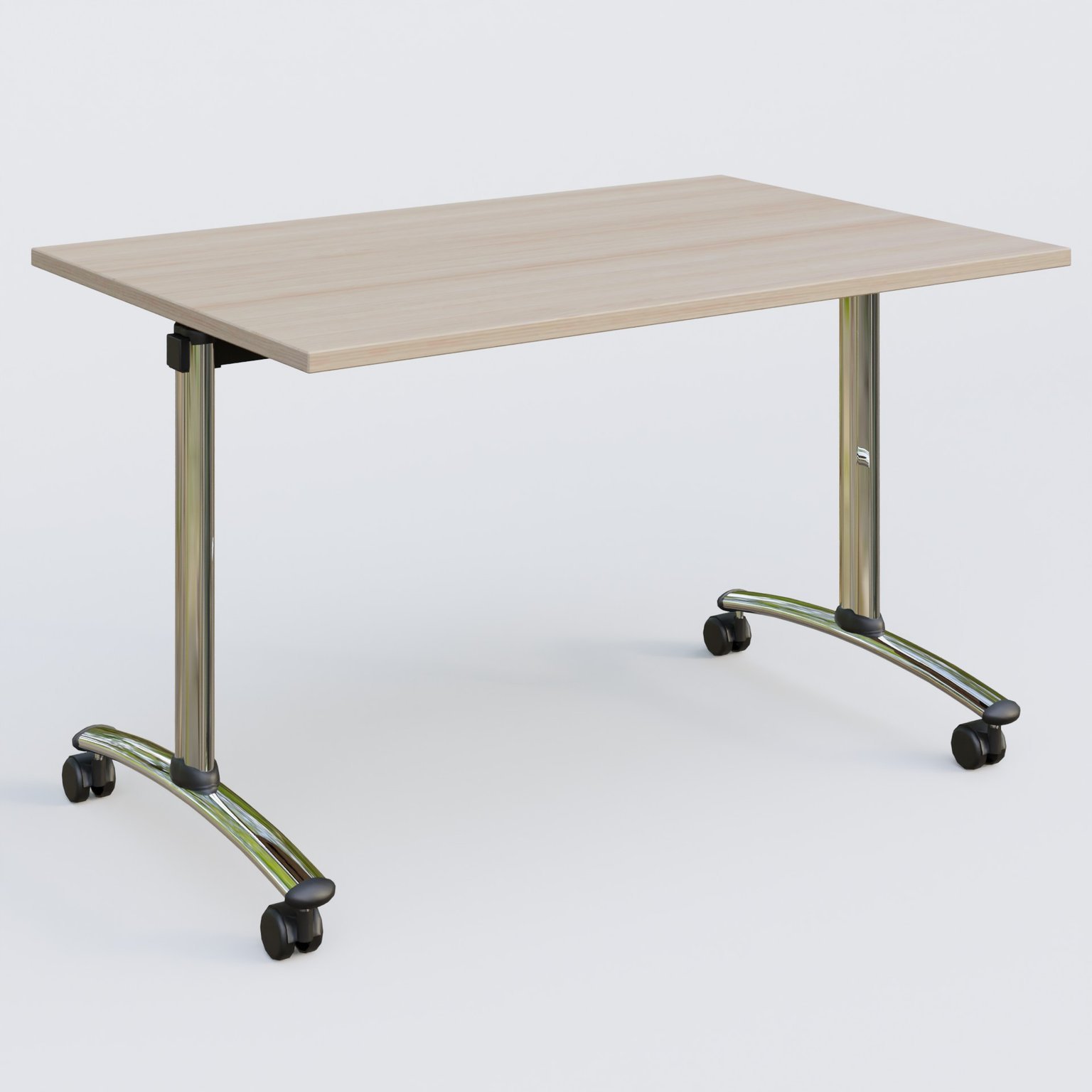 Table abattante gamme Arca 120-80 cm. Plateau Acacia et pietement Chrome.