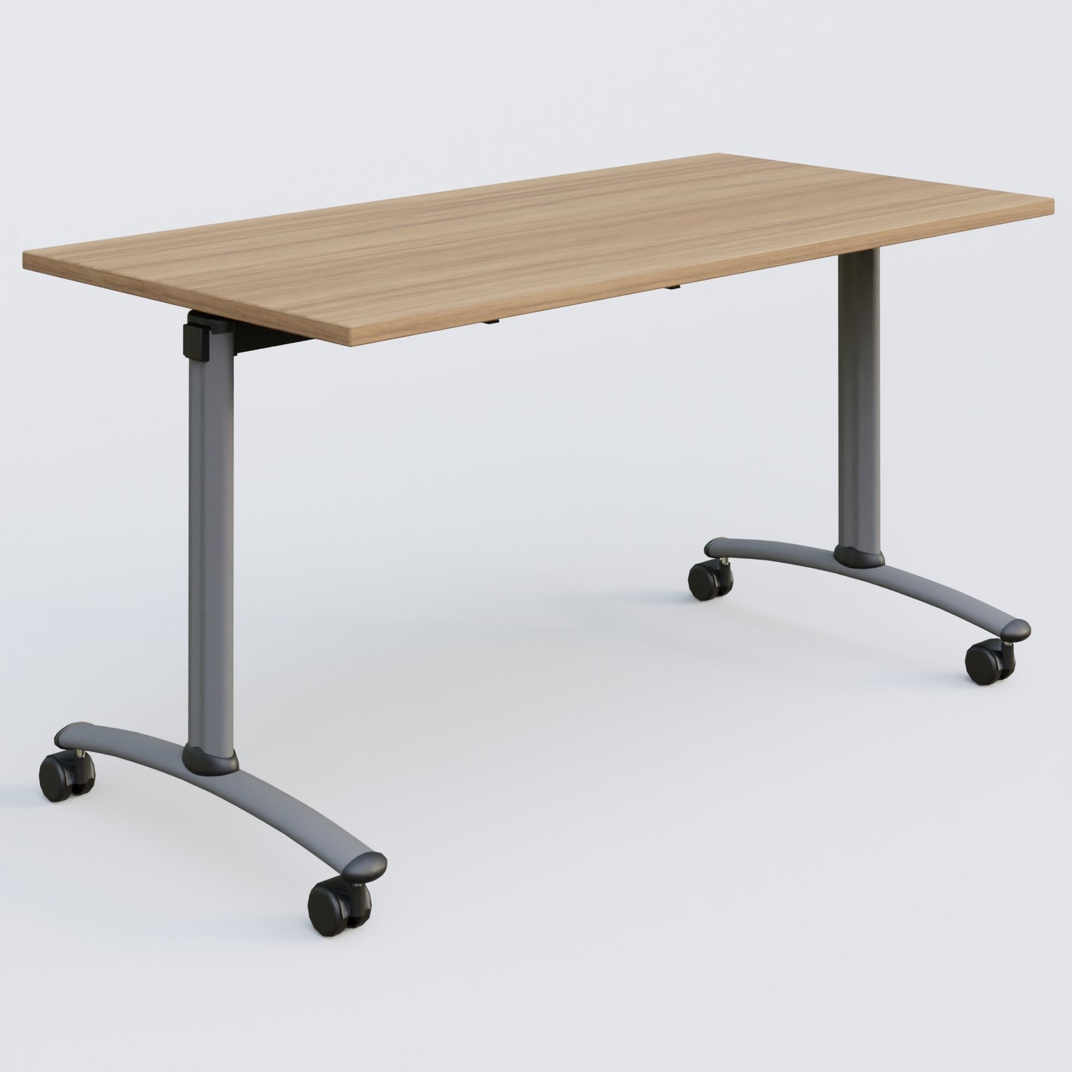 Table abattante gamme Arca 140-70 cm. Plateau Noyer et pietement Aluminium.