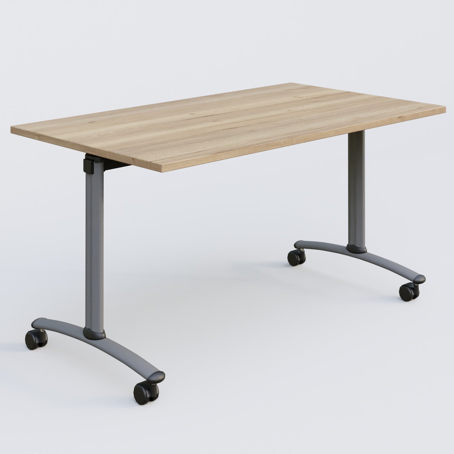 Table abattante gamme Arca 140-80 cm. Plateau Chêne naturel et pietement Aluminium.