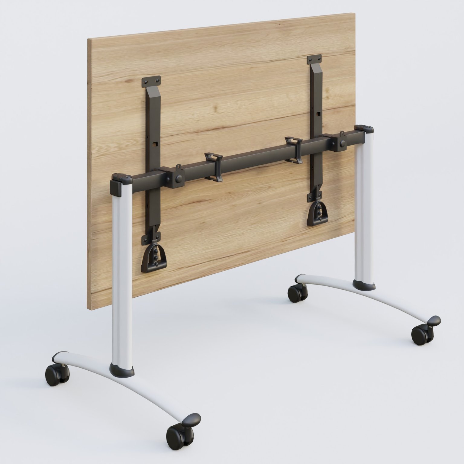 Table abattante gamme Arca 140-80 cm avec plateau en 25 mm d'épaisseur. Mécanisme de blocage/déblocage avec deux poignées sous le plateau aisémant accessibles.