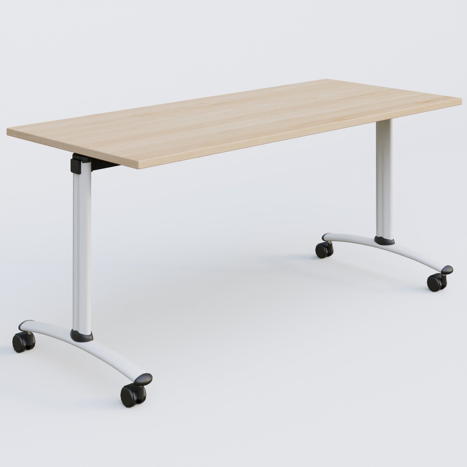 Table abattante gamme Arca 160-70 cm. Plateau Hêtre et pietement Blanc.
