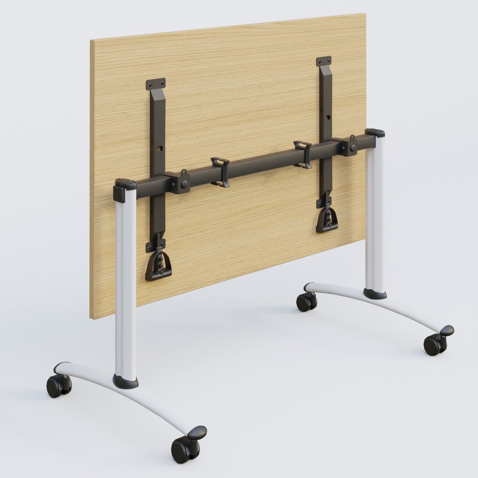Table abattante gamme Arca 160-80 cm avec plateau en 25 mm d'épaisseur. Mécanisme de blocage/déblocage avec deux poignées sous le plateau aisémant accessibles.