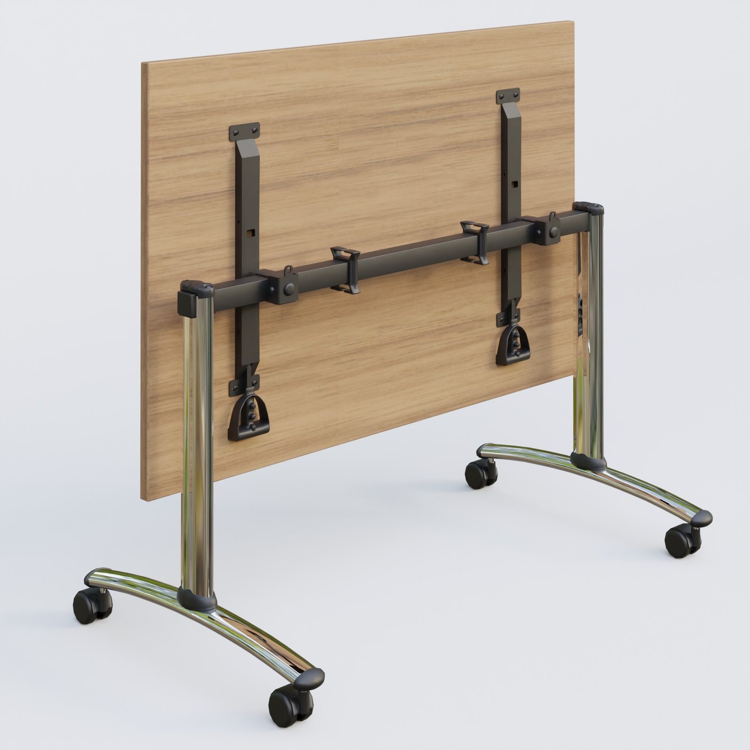 Table abattante gamme Arca 160-80 cm. Plateau Chêne clair et pietement Chrome. cheneCe Chromé (CH)