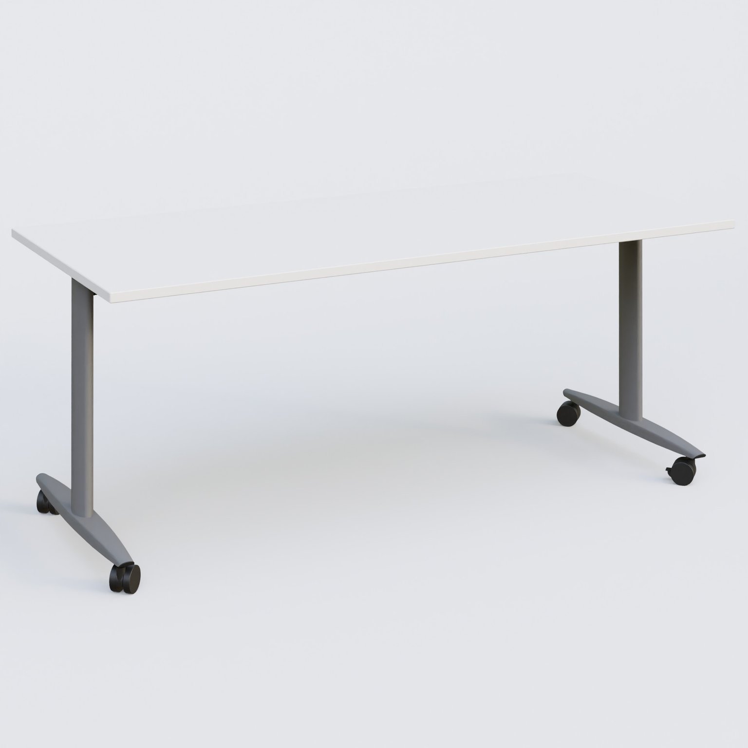 Table abattante gamme Design 180*80 cm. Plateau Blanc et pietement Aluminium.