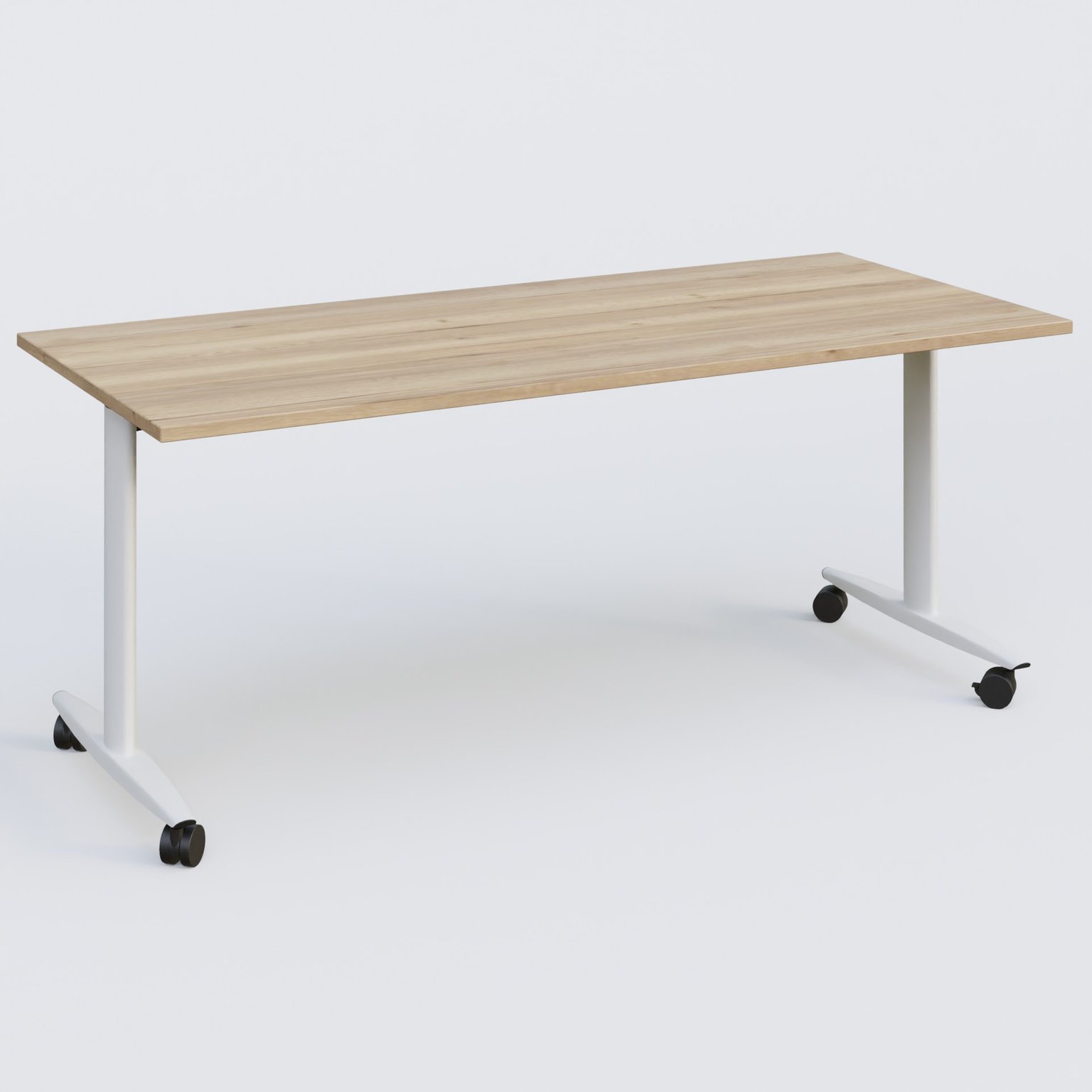 Table abattante gamme Design 180*80 cm. Plateau Chêne naturel et pietement Blanc.