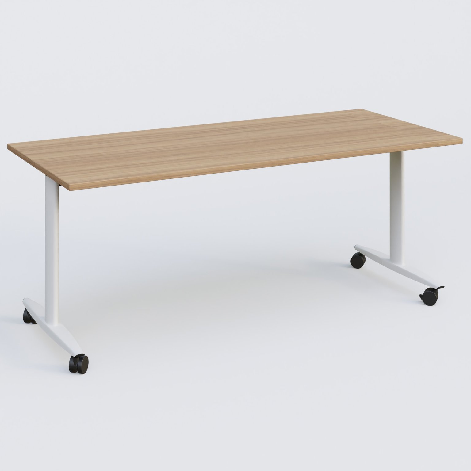 Table abattante gamme Design 180*80 cm. Plateau Chêne naturel et pietement Blanc. cheneNaturelMh84 blancBl