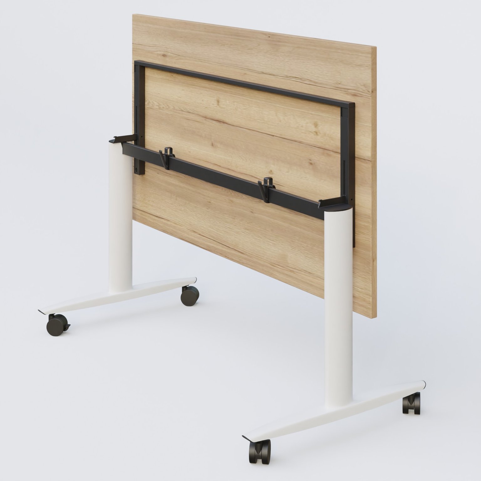 Table abattante gamme Design 200*100 cm. Plateau Chêne naturel et pietement Blanc.