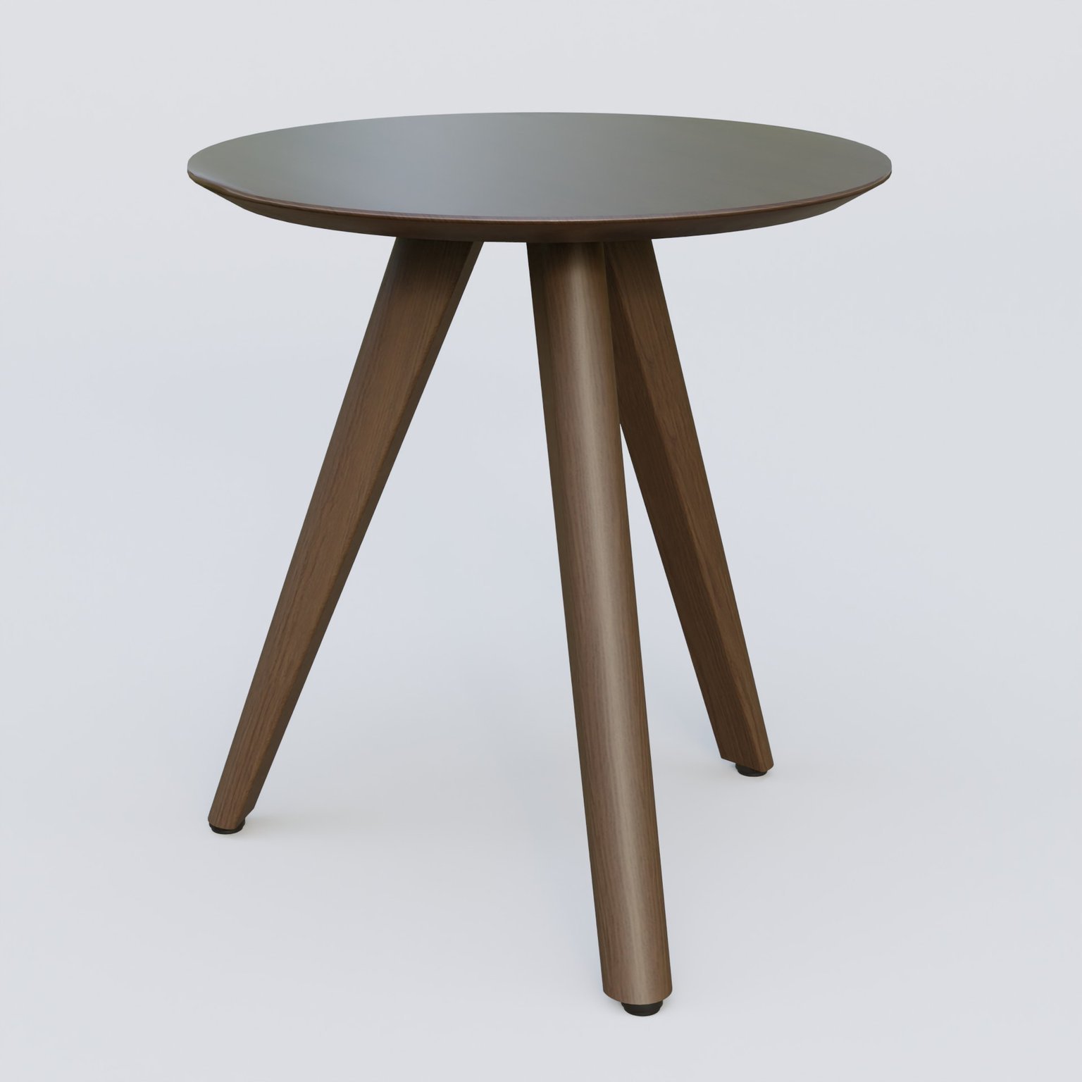 Table Basse Fashion Styl piètement 3 pieds en bois et plateau bois. Plateau Chêne et pietement Chêne Moka.