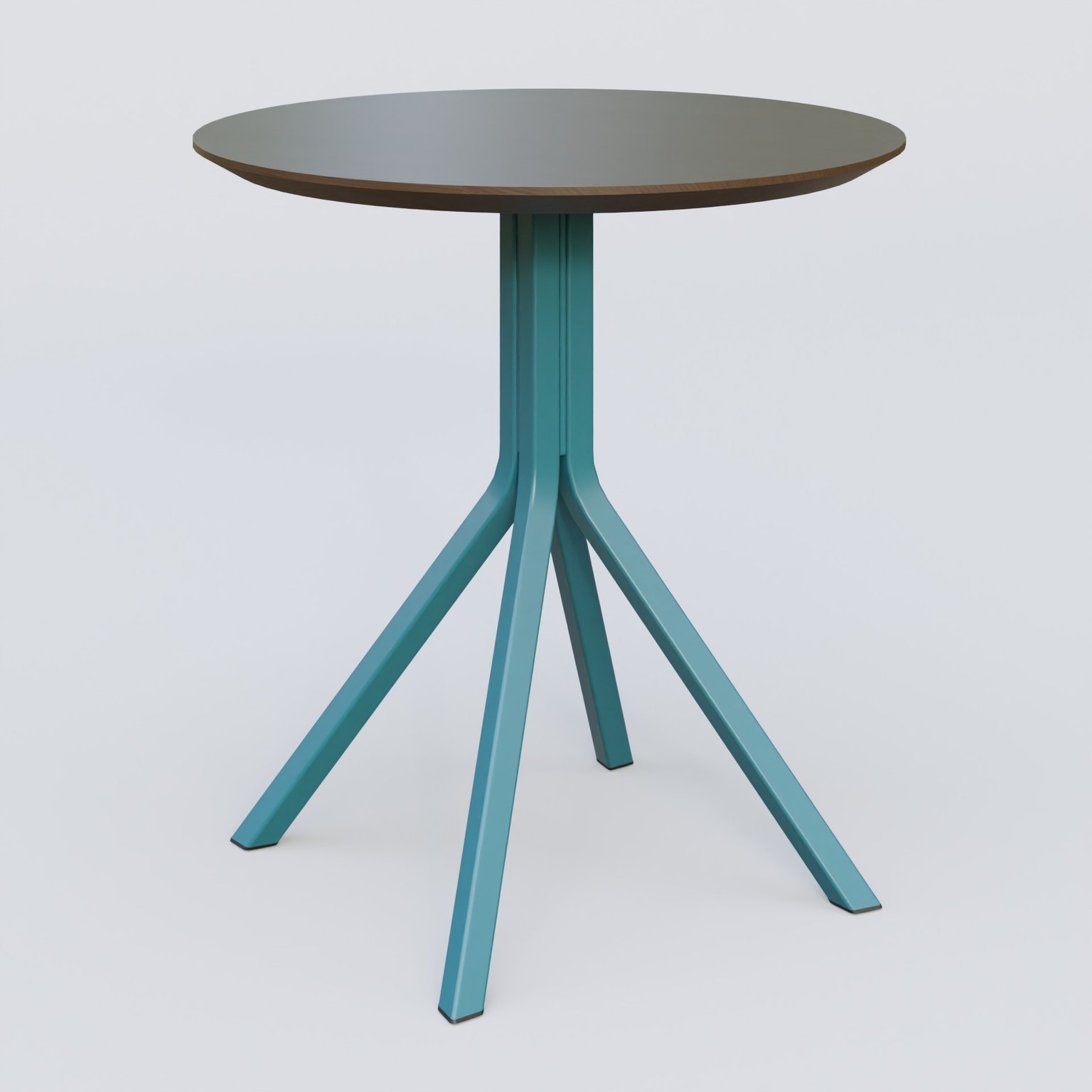 Table Basse Fashion Styl piètement 4 branches en métal et plateau bois. Plateau Chêne Moka et pietement Bleu Petrole (RAL 5025).