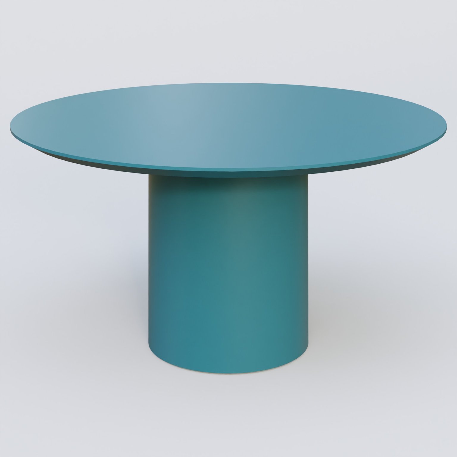 Table Basse Fashion Styl piètement colonne en métal D-26cm et plateau bois. Plateau Bleu Petrole (RAL 5025) et pietement Bleu Petrole (RAL 5025).