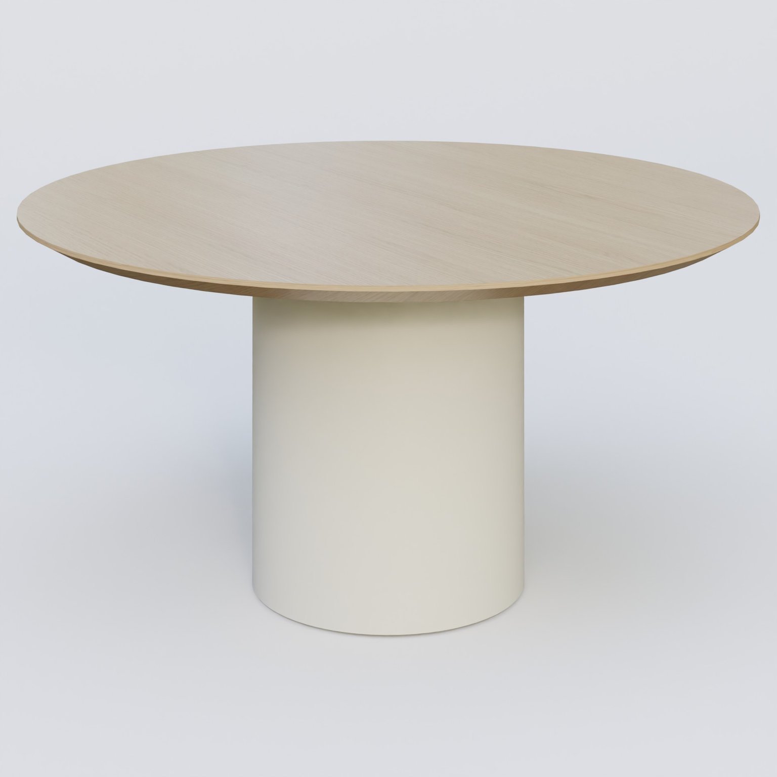 Table Basse Fashion Styl piètement colonne en métal D-26cm et plateau bois. Plateau Chêne et pietement Blanc (RAL 9010).