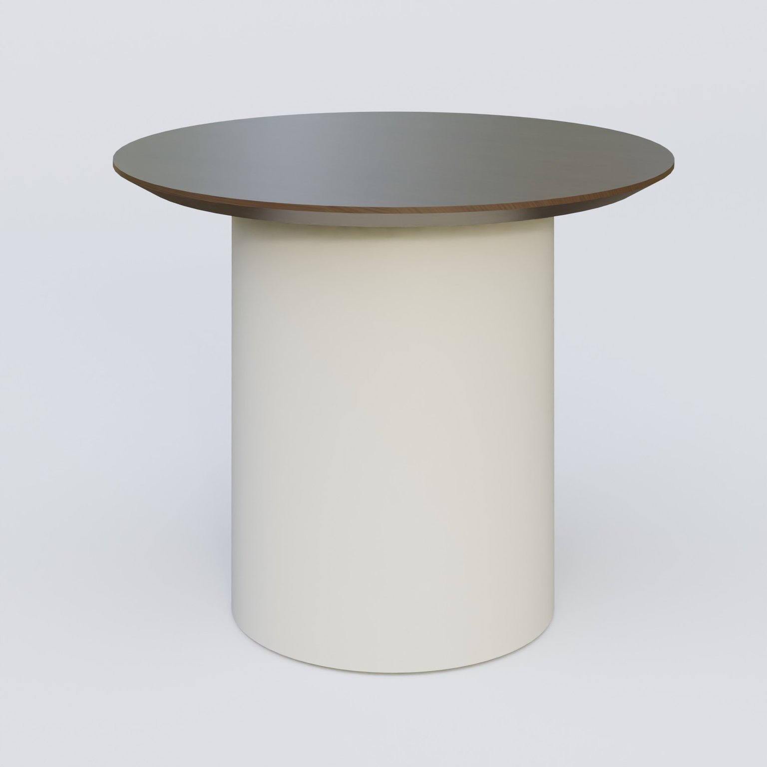 Table Basse Fashion Styl piètement colonne en métal D-26cm et plateau bois. Plateau Chêne Moka et pietement Blanc (RAL 9010).