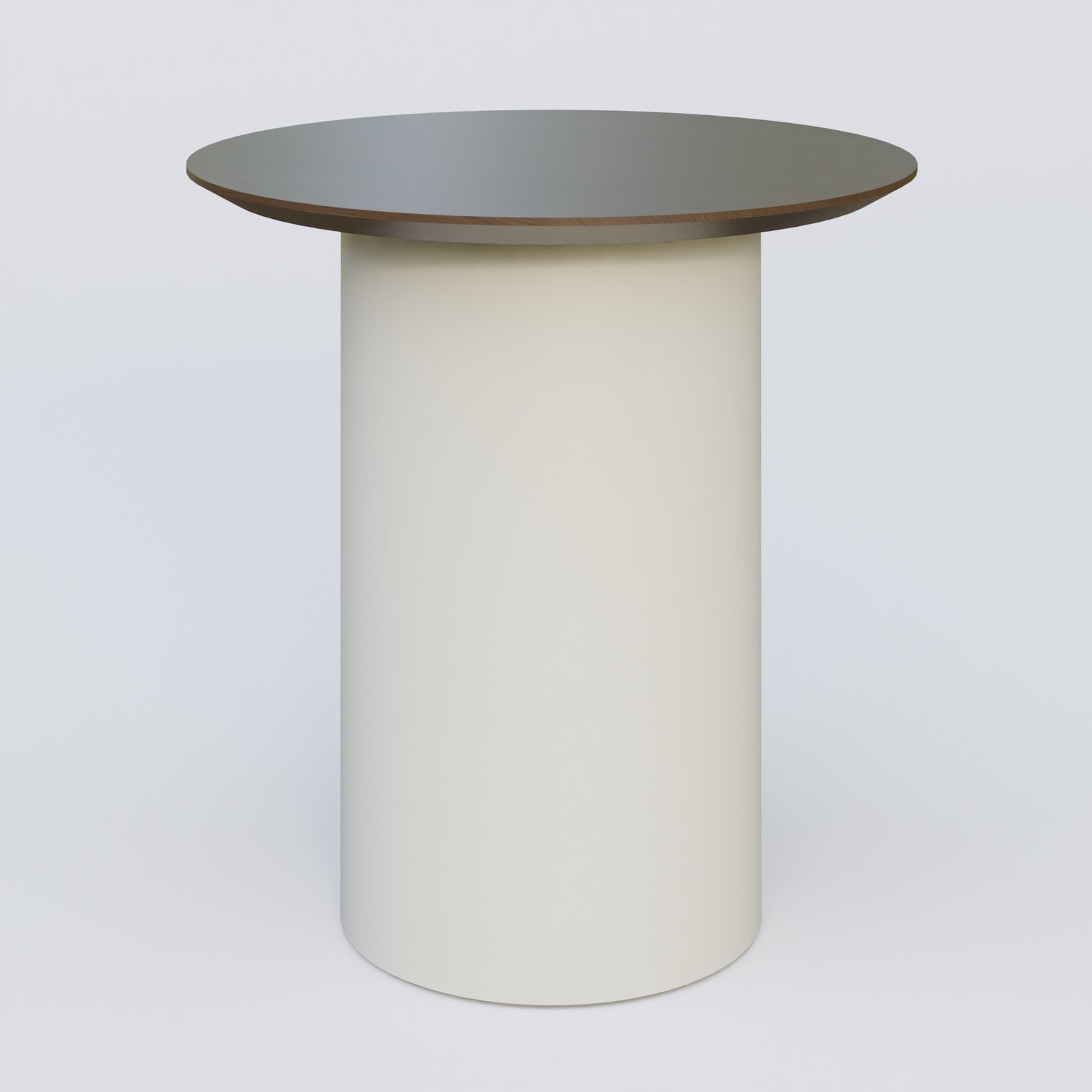 Table Basse Fashion Styl piètement colonne en métal D-26cm et plateau bois. Plateau Chêne Moka et pietement Gris (RAL 7038). ral7038 cheneMokaCm