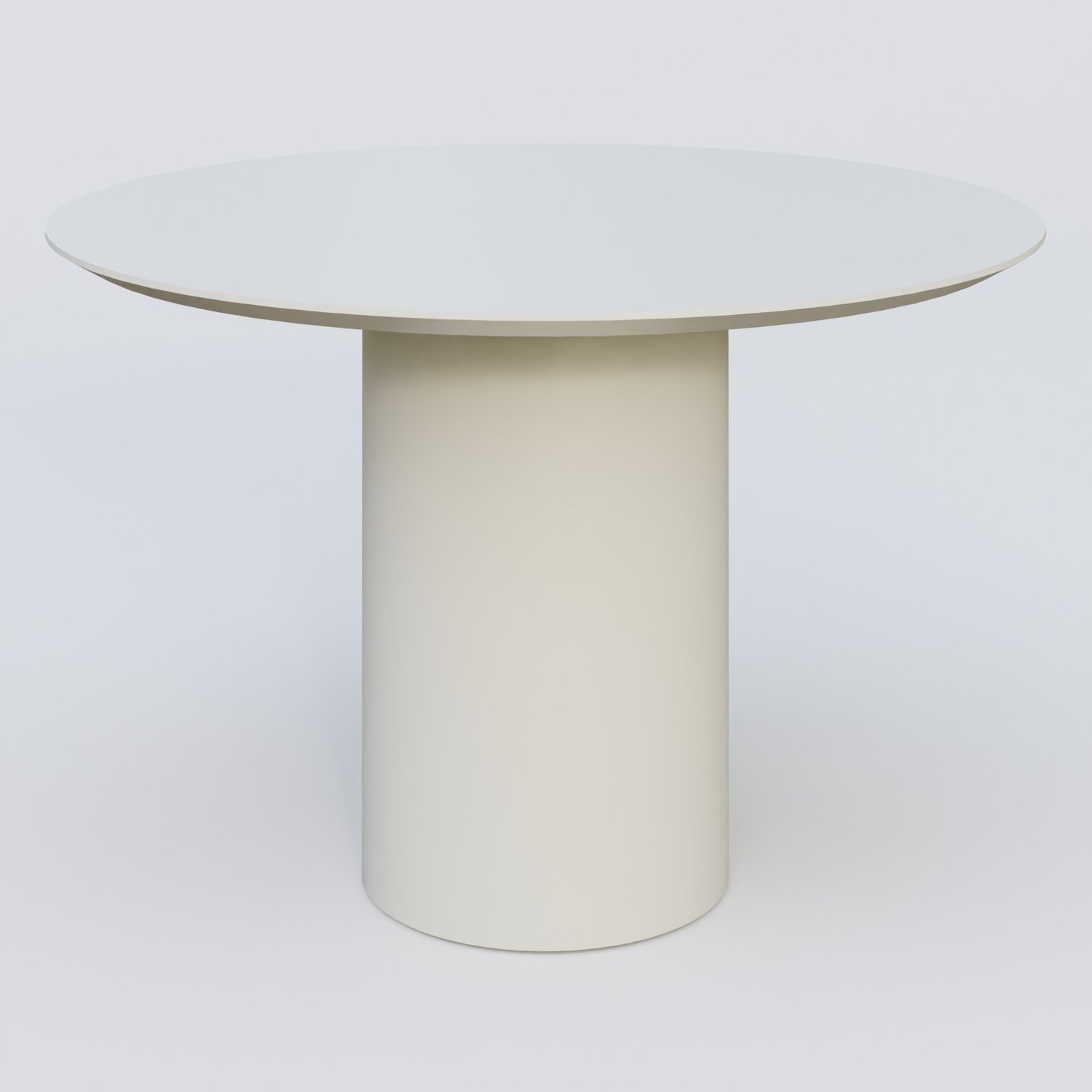 Table Basse Fashion Styl piètement colonne en métal D-26cm et plateau bois. Plateau Blanc (RAL 9010) et pietement Blanc (RAL 9010).