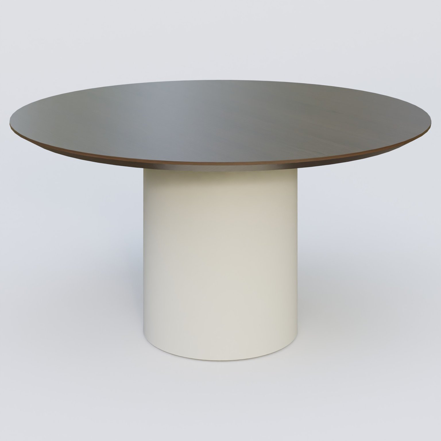 Table Basse Fashion Styl piètement colonne en métal D-26cm et plateau bois. Plateau Chêne Moka et pietement Blanc (RAL 9010).