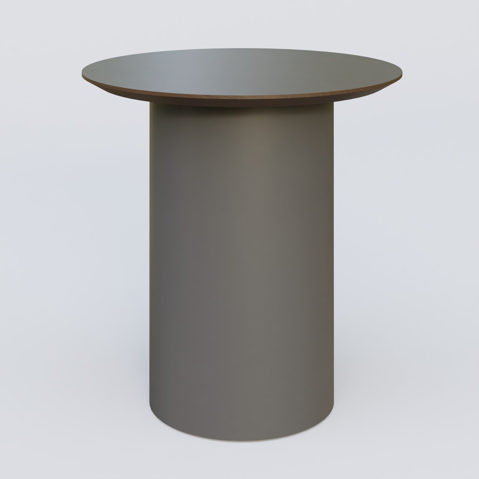 Table Basse Fashion Styl piètement colonne en métal D-26cm et plateau bois. Plateau Chêne Moka et pietement Carbon Grey.