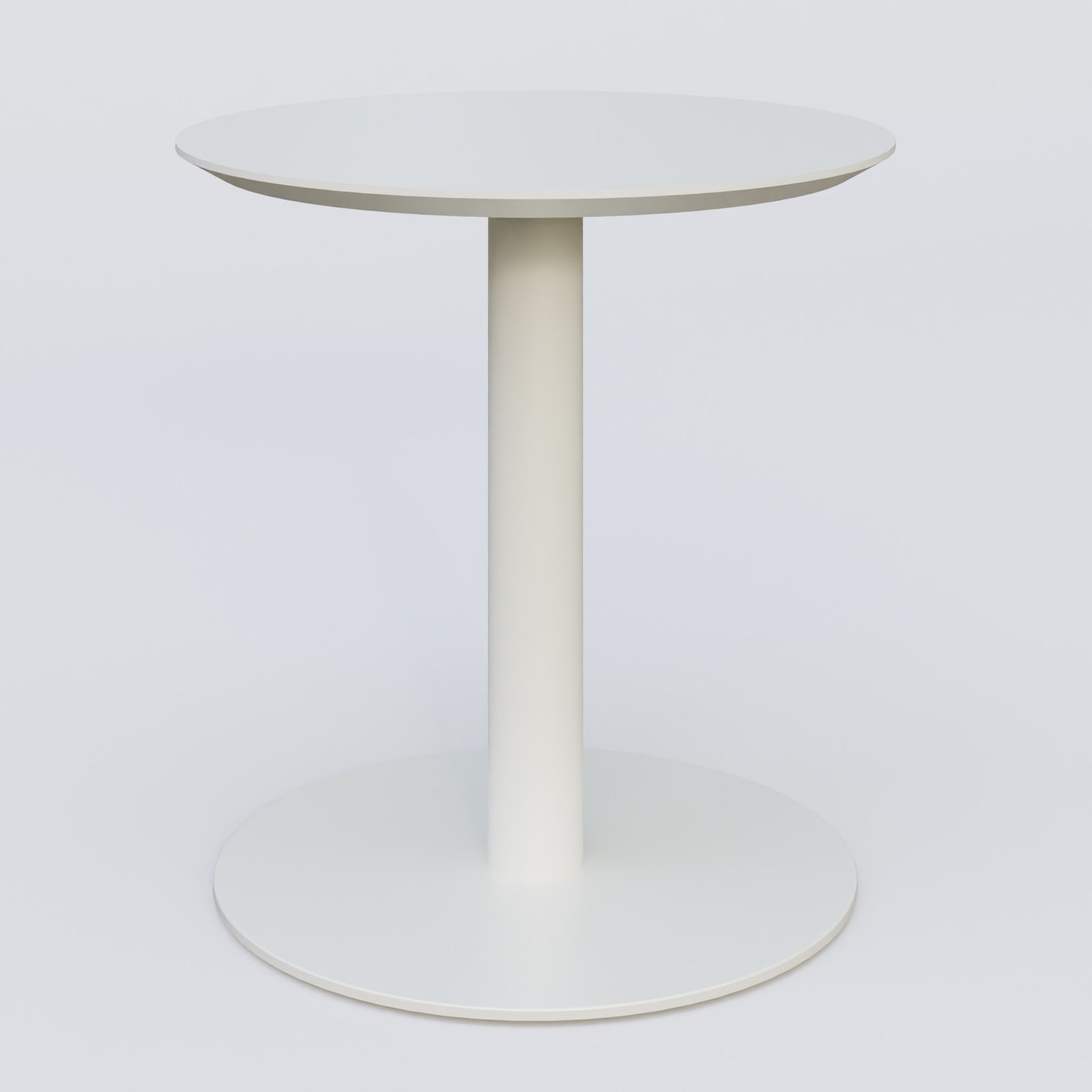 Table Basse Fashion Styl piètement colonne en métal et plateau bois. Plateau Blanc (RAL 9010) et pietement Blanc (RAL 9010).