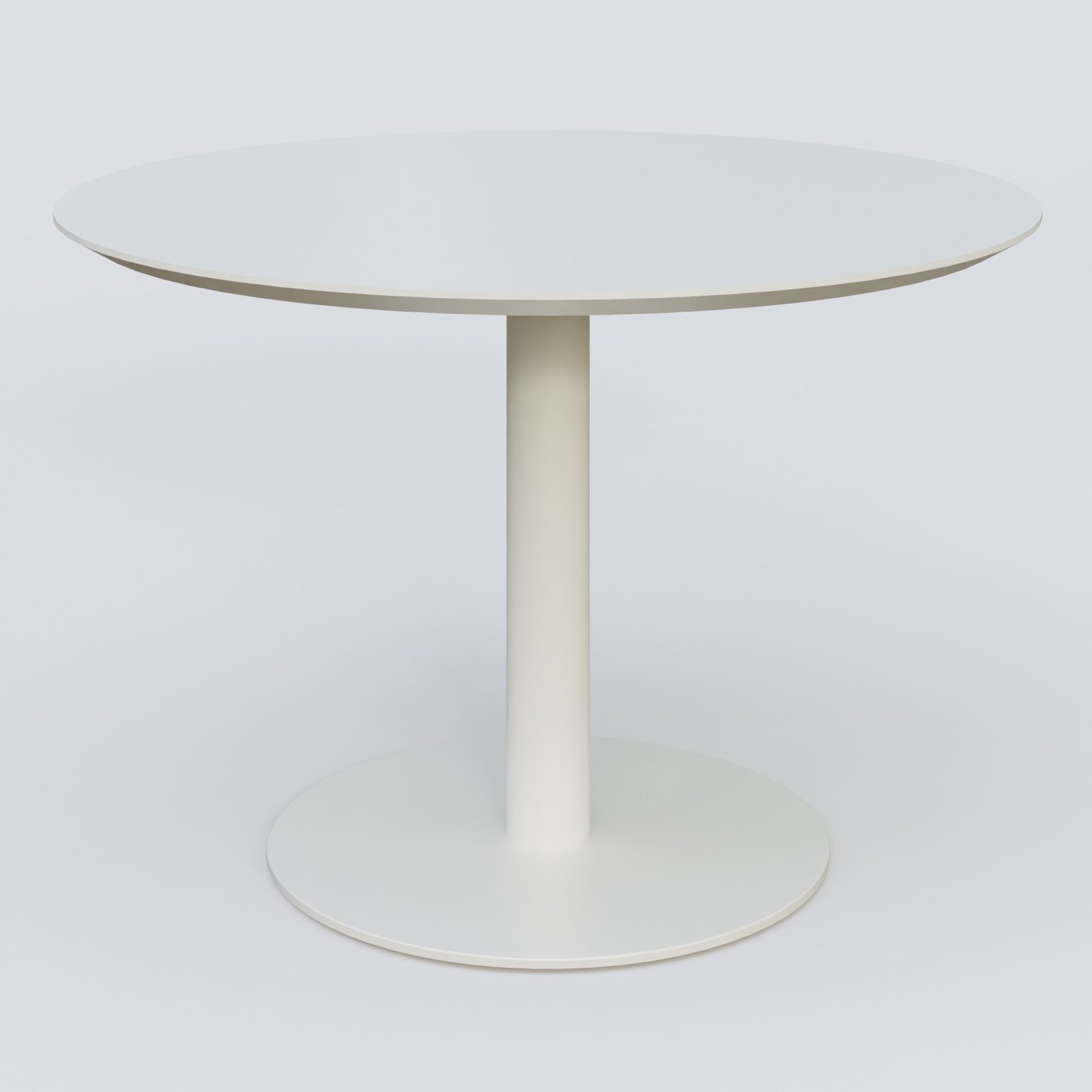Table Basse Fashion Styl piètement colonne en métal et plateau bois. Plateau Blanc (RAL 9010) et pietement Blanc (RAL 9010).