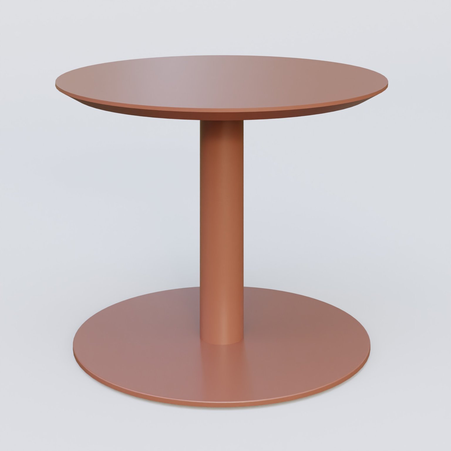 Table Basse Fashion Styl piètement colonne en métal et plateau bois. Plateau Brun cuivré (RAL 8004) et pietement Brun cuivré (RAL 8004).