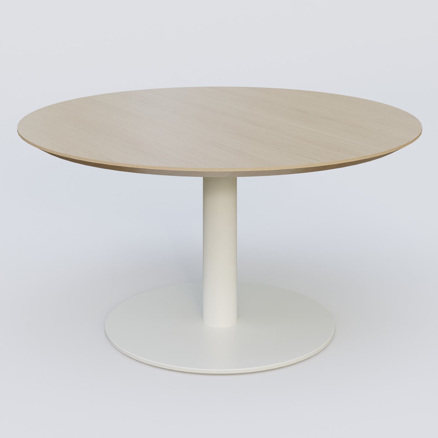 Table Basse Fashion Styl piètement colonne en métal et plateau bois. Plateau Chêne et pietement Blanc (RAL 9010).