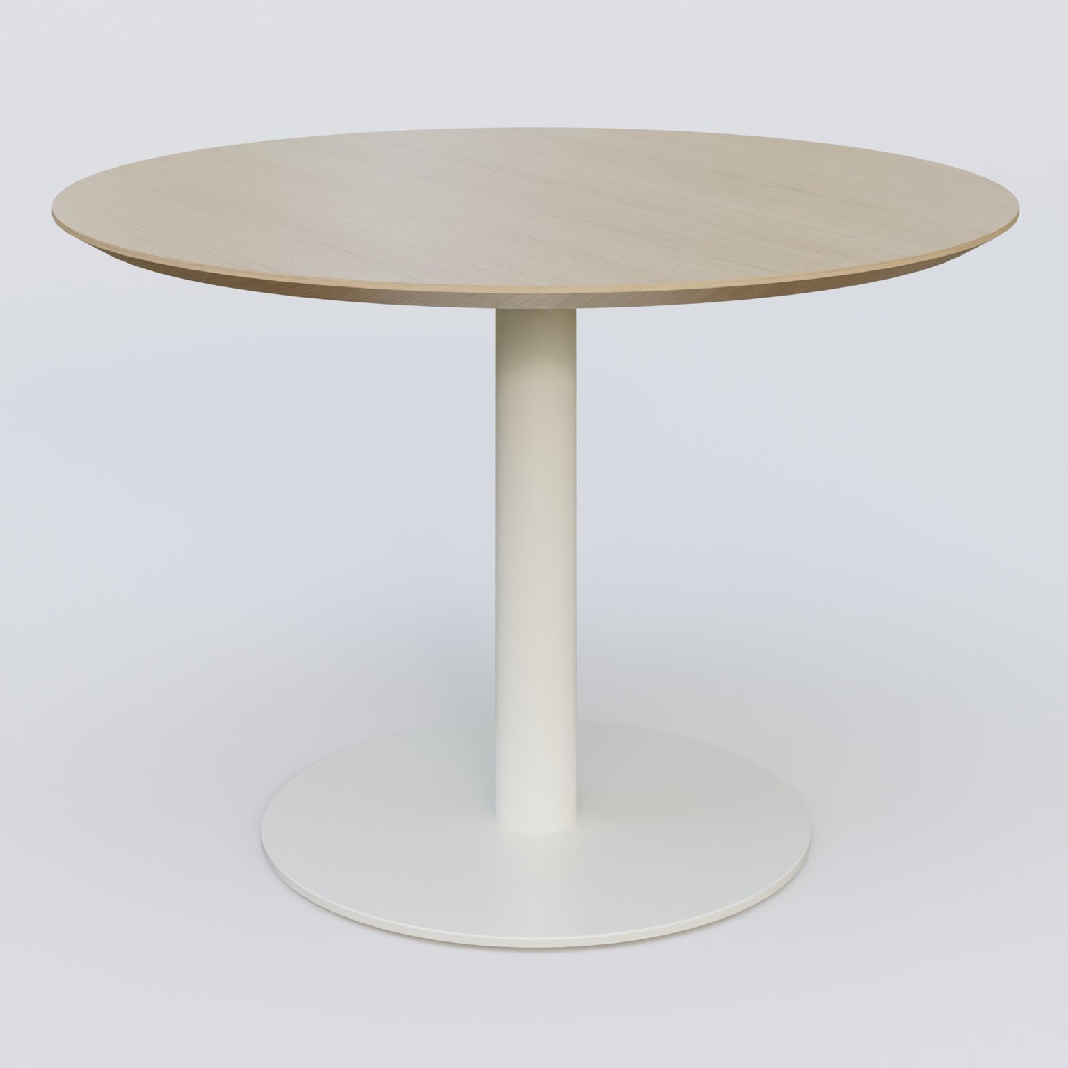Table Basse Fashion Styl piètement colonne en métal et plateau bois. Plateau Chêne et pietement Blanc (RAL 9010).